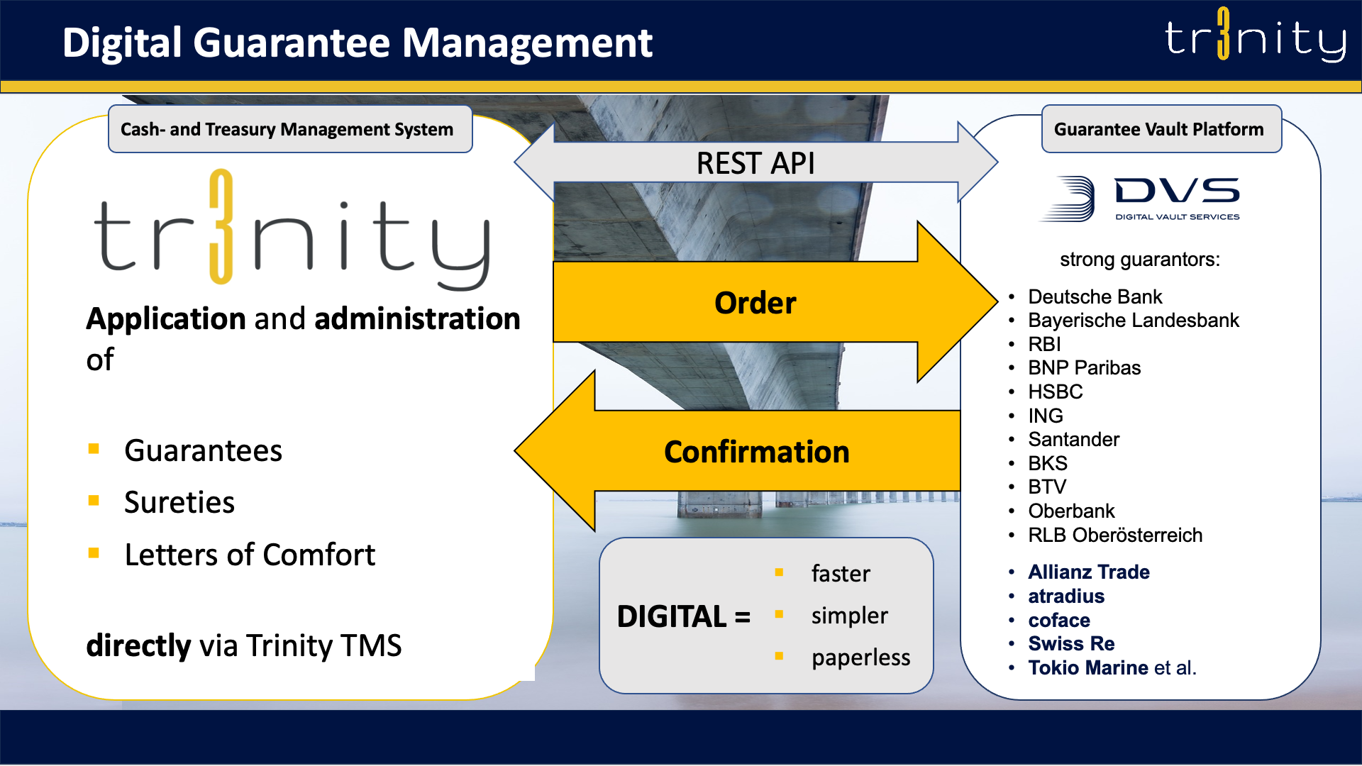 Trinity has shown continuity for 25 years and will continue to do so in the future. Customised, experienced, faster and personal.